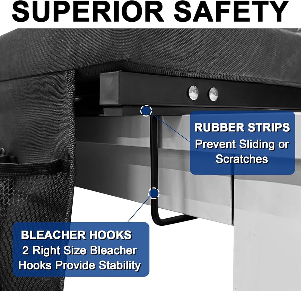 دعم إطار فولاذي ثابت، تم تصميمه بإطار فولاذي متين من سبيكة معدنية، تدعم كراسي التبييض هذه ما يصل إلى 350 رطلاً مع الحفاظ على خفة الوزن. تساعد الأشرطة المطاطية المضادة للانزلاق على إبقاء المقعد ثابتًا في مكانه على المدرجات.