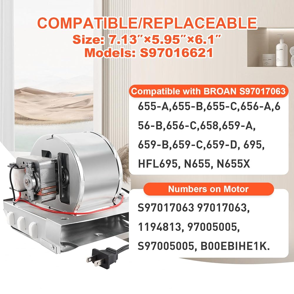 توافق واسع: سخان المروحة الخاص بنا متوافق مع Broan 655-A 655-B 655-C 656-A 656-B 656-C 658 659-A 659-B 659-C 659-D، 695، HFL695، N655، N655X، متوافق مع nutone N655، N655X