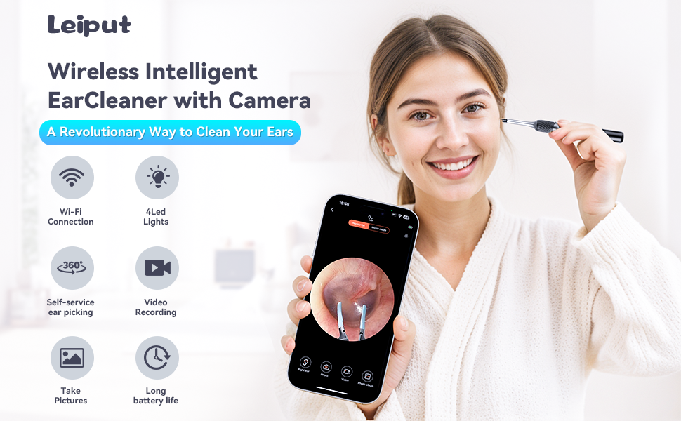 Mode switch: Take off the cover, connect to your phone via WIFI, and start using the Tweezers Mode to remove earwax. Gently press the 360-degree switch of the tweezers, put on the silicone ear spoon, and you can switch to the Ear Spoon Mode. At the same time, the tweezers will remain open, increasing friction to arvoid dropping the silicone cover.