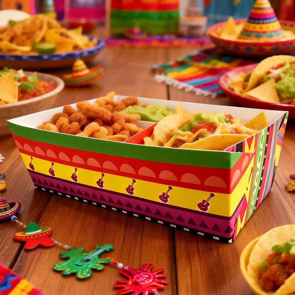 حاويات طعام مريحة: يمكن استخدام صواني حامل حلوى سينكو دي مايو لتخزين الطعام، مثل الكلاب الساخنة ورقائق التورتيلا والكعك والوجبات الخفيفة والفشار وما إلى ذلك. إنها مريحة في استخدامها لتخزين الطعام