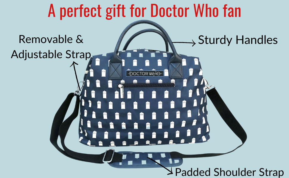 بالإضافة إلى ذلك، تحتوي الحقيبة على جيوب مبطنة بالداخل والخارج، وهي رائعة لتخزين أجهزة الكمبيوتر المحمولة بحجم 15 بوصة، والأطفال الهلامي، والأجهزة الصوتية، ومضادة للبلاستيك، يوميات لمدة 500 عام، والمفاتيح، والساتسوماس، واليويو، وبطاقات عضوية نادي تنس الطاولة ألفا كنتوران، وورقة نفسية، والكائنات الفضائية عملات معدنية و أي شيء آخر قد تحتاجينه في مغامراتك في الزمان والمساحة! تشتمل الحقيبة أيضًا على حلقة قماشية إضافية يمكن استخدامها لربط الحافظة بمقابض الأمتعة.