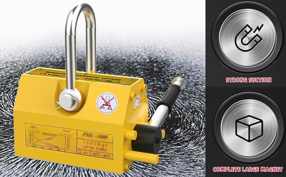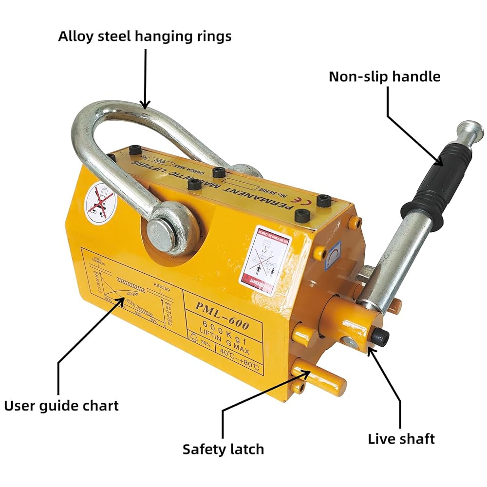 رافع مغناطيسي، مغناطيس رفع دائم عالي التحمل - سعة سحب 1320 رطل/600 كجم - للرافعة، والكتل، ورافعة المتجر، والاستخدام الصناعي الثقيل
