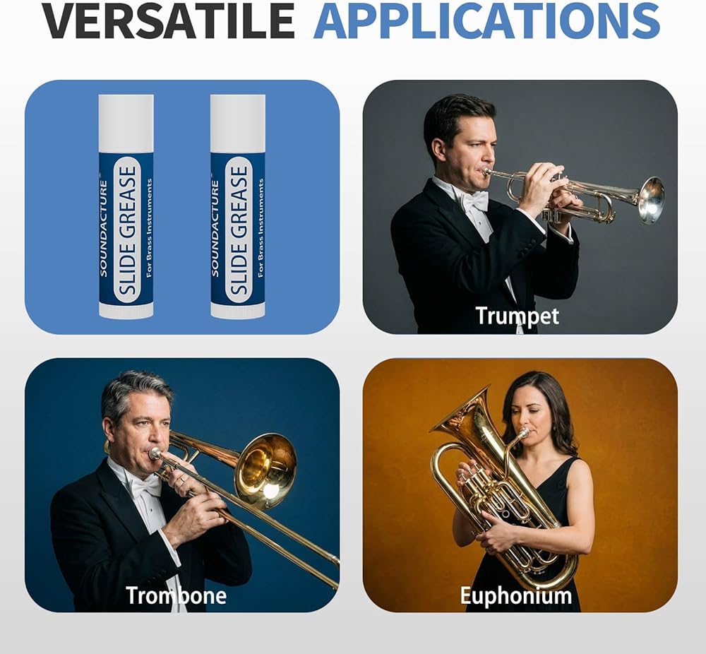 • تركيبة شحم منزلقة مثالية للأدوات النحاسية - يسمح سُمك مادة التشحيم المنزلقة المتوازنة بانزلاق البوق وشريحة الترومبون بسلاسة دون الشعور بالدهون المفرطة. مادة تشحيم مثالية لضبط العناية بالشرائح وصيانة ملحقات الترومبون البوق التي يمكن الاعتماد عليها.