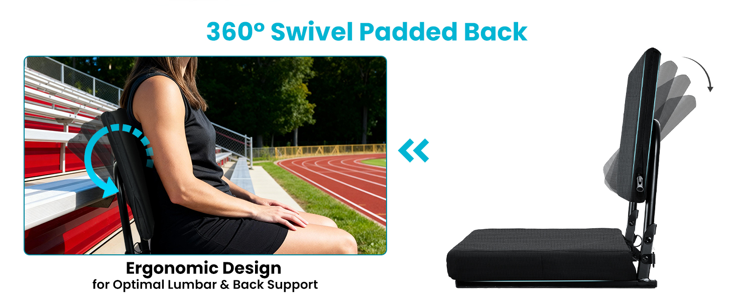 【مسند ظهر دوار مطور】على عكس مقاعد المبيضات الأخرى، يأتي كرسي الاستاد VSTKEN مع مسند ظهر مبطن دوار - ترقية خاصة مصممة للدعم المريح. يوفر راحة مثالية لأسفل الظهر والظهر، حتى تتمكن من الاستمتاع بالأحداث الرياضية طوال اليوم دون ألم في الظهر! (الحجم: 16.5 بوصة طول × 13.4 بوصة عرض × 15 بوصة ارتفاع)