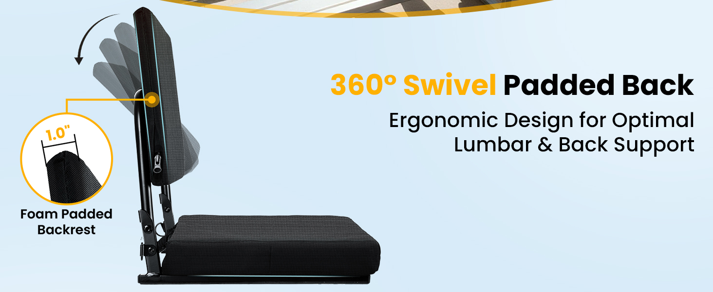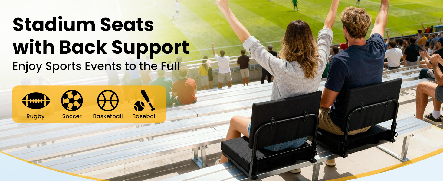 【راحة فائقة ومسند ظهر قابل للتعديل】- تتميز مقاعد الاستاد لدينا بمسند ظهر قابل للتعديل بزاوية 360 درجة - ببساطة قم بلفها وإمالتها إلى الزاوية التي تريدها. مع وسادة إسفنجية مبطنة بسمك 2.2 سم، يمكنك الاستمتاع بالأحداث الرياضية طوال اليوم دون ألم في ظهرك أو مؤخرتك.
