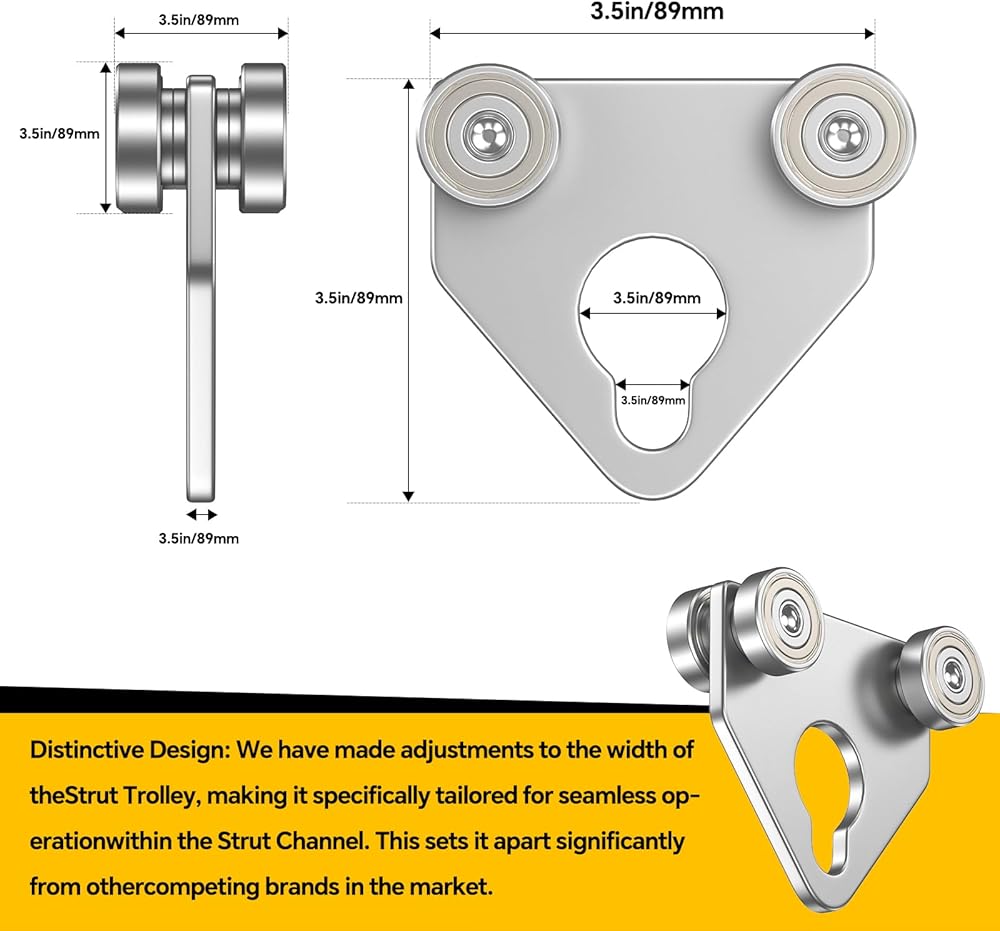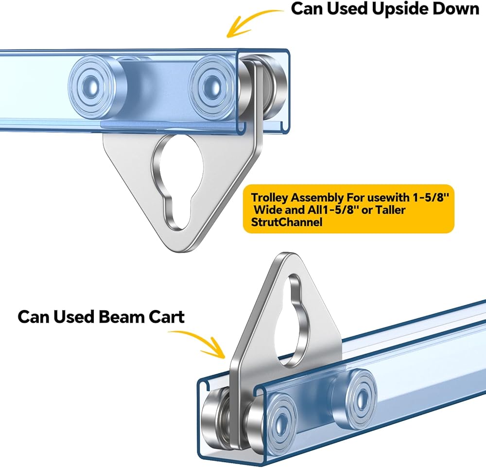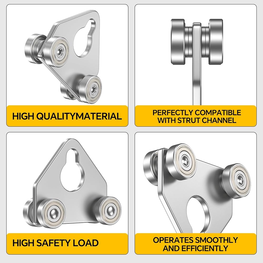 4 Wheel Trolley Assembly Roller Trolley - Silent M10 Bolt and Nuts - Use with 1-5/8" Wide Strut
