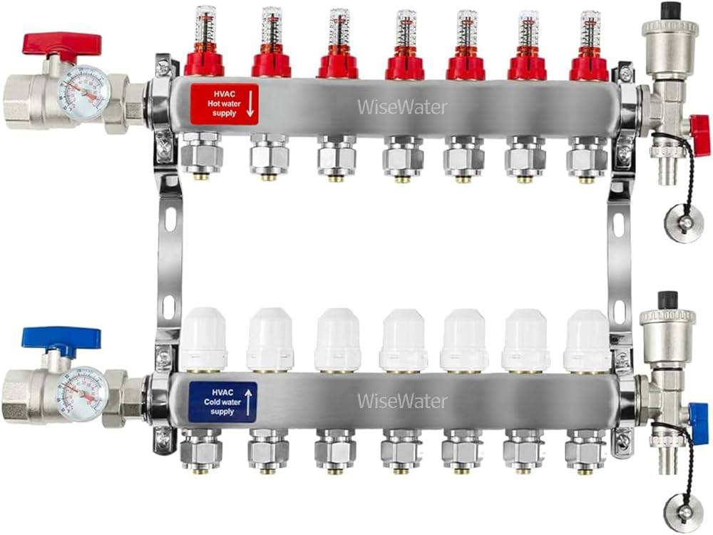 【جودة ممتازة】مشعبات WiseWater Pex Radiant مصنوعة من مادة الفولاذ المقاوم للصدأ المتينة، وهي مقاومة للتآكل ومقاومة للضغط ولها توصيل حراري أعلى، وتسخين أسرع وإدخال في الأنابيب البلاستيكية.