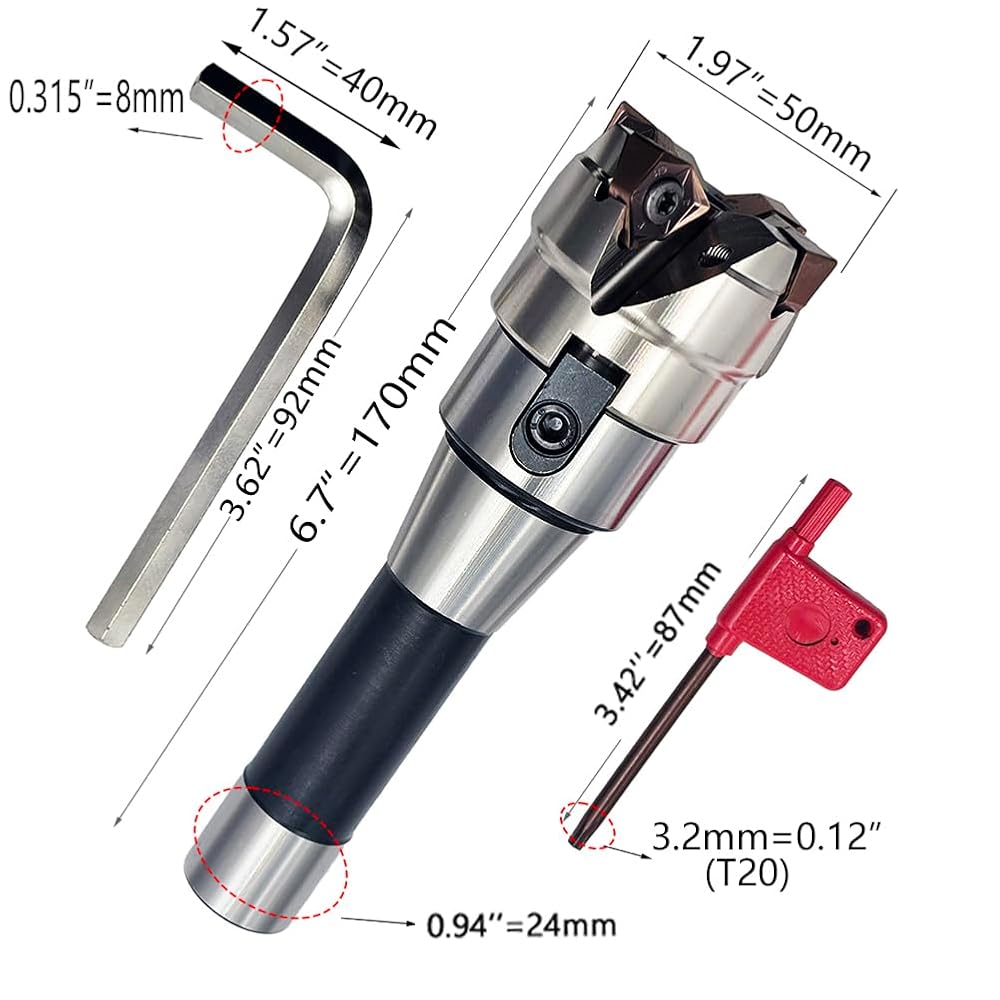 حامل قاطعة المطحنة الوجهية MFWN9050R-22-4T+R8-FMB22-7/16+WNMU080608 شفرة من سبيكة صلبة + مفتاح ربط 8 مم + مفتاح ربط T15، يستخدم في التشغيل الآلي لقطعة العمل على آلة الطحن.