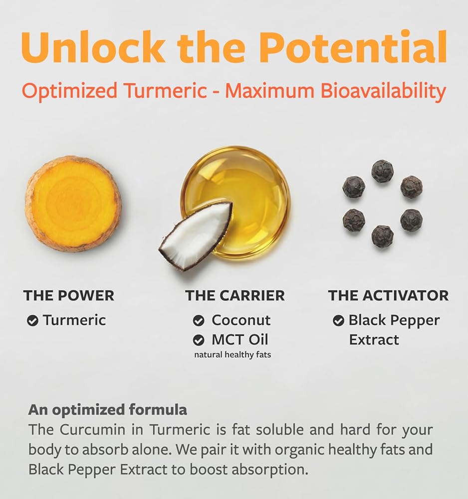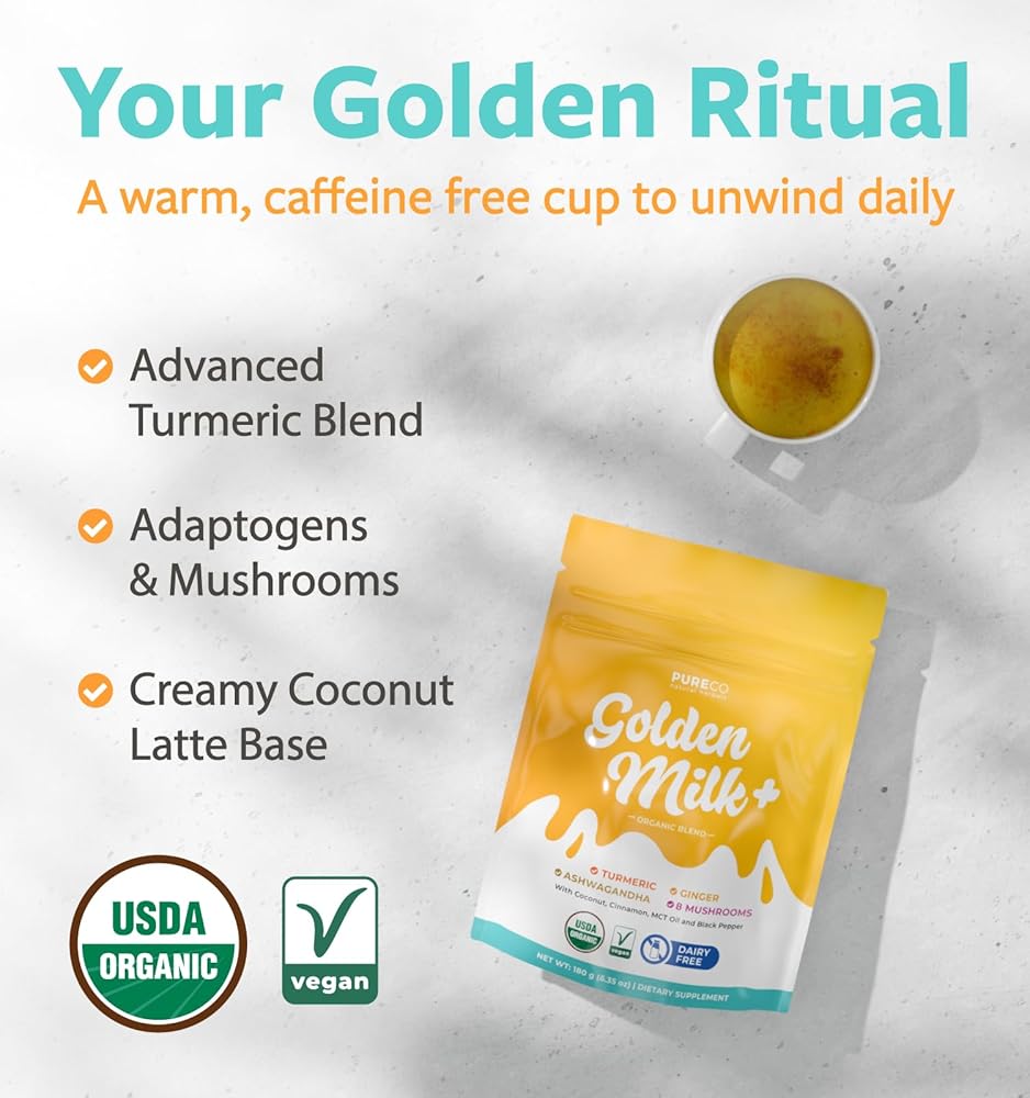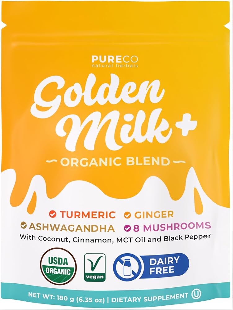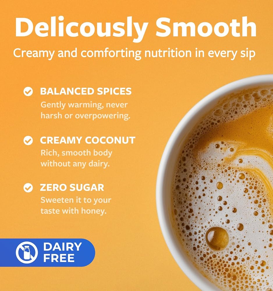 قوة فعالة نقية: الآن يمكنك تجربة جميع فوائد الأعشاب المتكيفة مع الحليب الذهبي العضوي التابع لوزارة الزراعة الأمريكية مع الكركم والزنجبيل المليء بالمركبات النشطة بيولوجيًا المعززة للعافية.