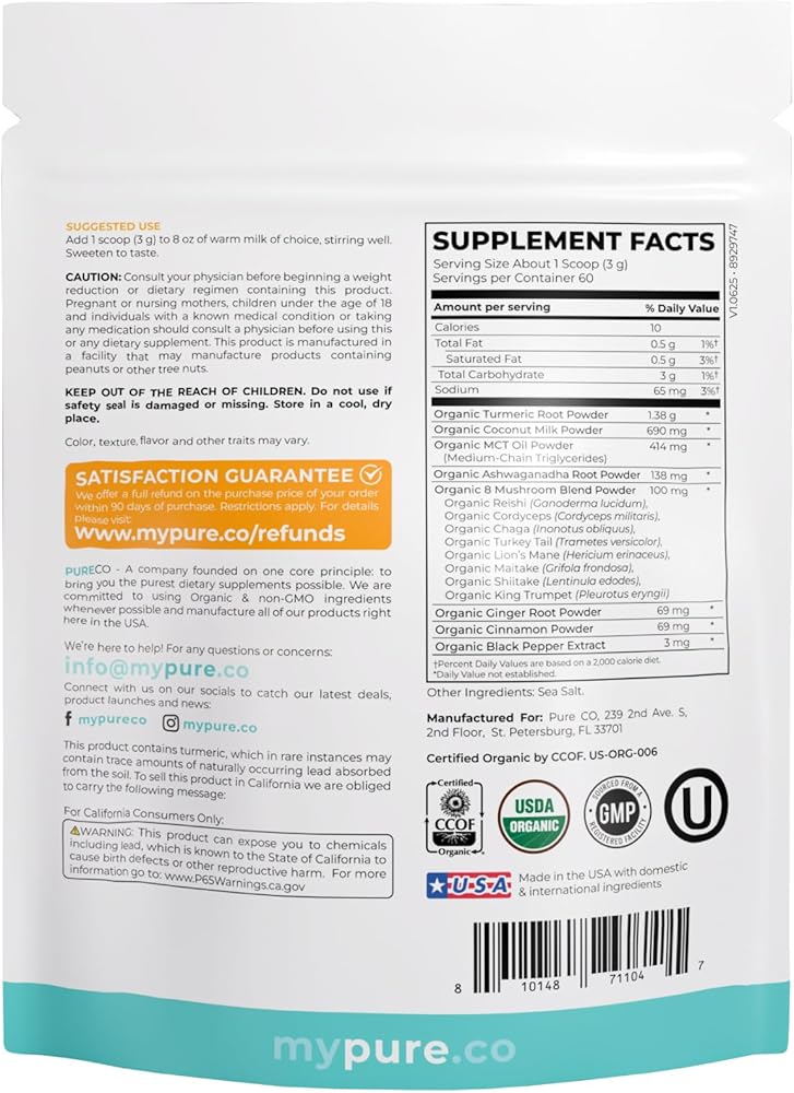 الجودة التي يمكنك الوثوق بها: يتم تصنيع لاتيه الحليب الذهبي الخاص بنا بكل فخر في الولايات المتحدة بمكونات نقية غير معدلة وراثيًا من جميع أنحاء العالم في منشأة cGMP دون أي إضافات أو مواد حافظة.