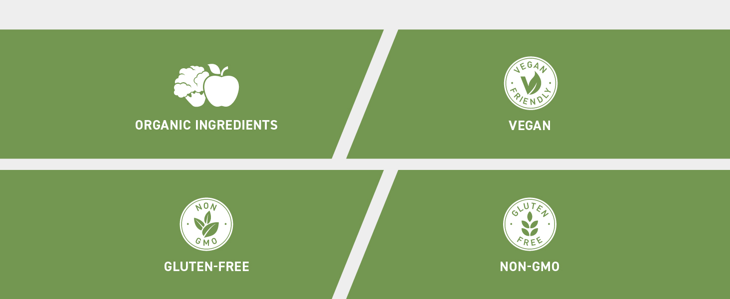 مكونات عضوية 100% من 26 فاكهة + خضروات: كل رشفة لذيذة مليئة بالفيتامينات العضوية والمعادن ومضادات الأكسدة من الفواكه والخضروات الحقيقية، مما يوفر لك التغذية التي تحتاجها لبدء يومك بالحياة والحيوية.