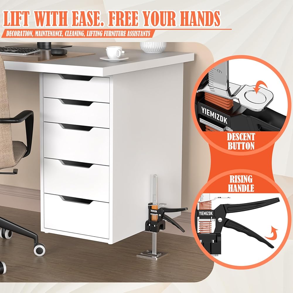 3. رفع الأثاث: يمكن أن يكون نقل ورفع قطع الأثاث الثقيلة مثل الأرائك وإطارات السرير متعبًا للغاية وموفرًا للعمالة من خلال توفير آلية رفع مستقرة، مما يسمح لك برفع الأثاث عن الأرض، مما يجعل من السهل المناورة والنقل دون وضع عبء على جسمك.
