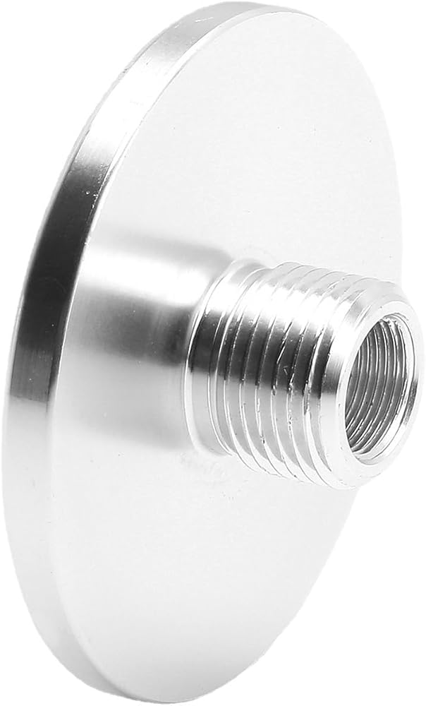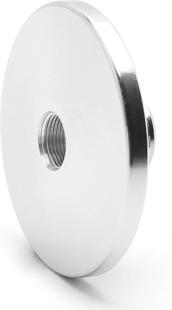 Aluminum 1/2-28 to 3/4-16 2.5 Dia Threaded Oil Filter Adapter, Made of T6 6061 Aircraft Grade Aluminum, Flange Nut Type, Right Hand Drive System, Polished Finish
