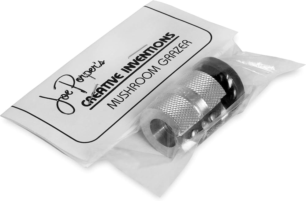 Mushroom Grazer Construction – Using surgical blade steel for a precise and clean cut, a rigid aluminum body with knurling for a tight grip, and an adjustable plastic knob for depth control the Joe Proper Mushroom Grazer is built to last.