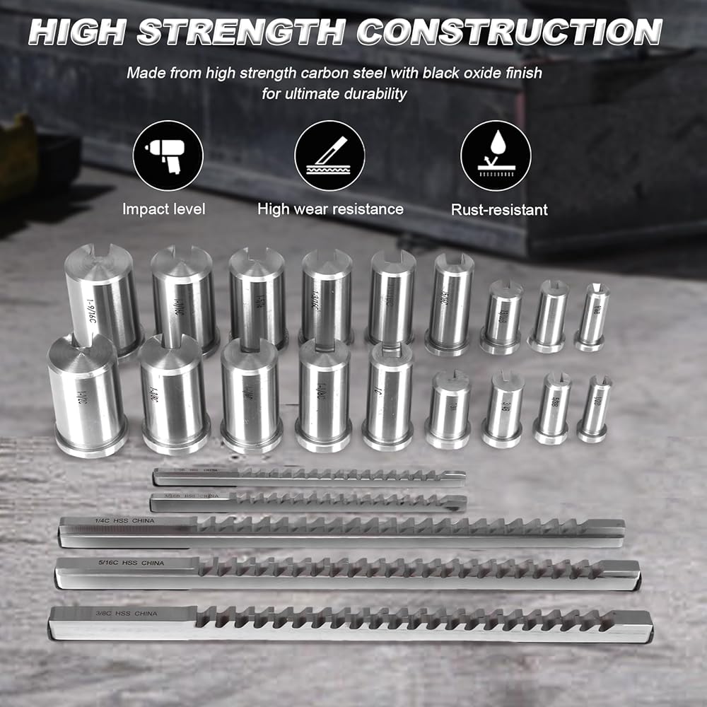 Sturdy Completeness: The imperial broach set comprises 18 distinct collar bushings and 7 reliable shims (2 B type, 5 C type), so you can tackle varied projects and achieve consistent broaching results every time.