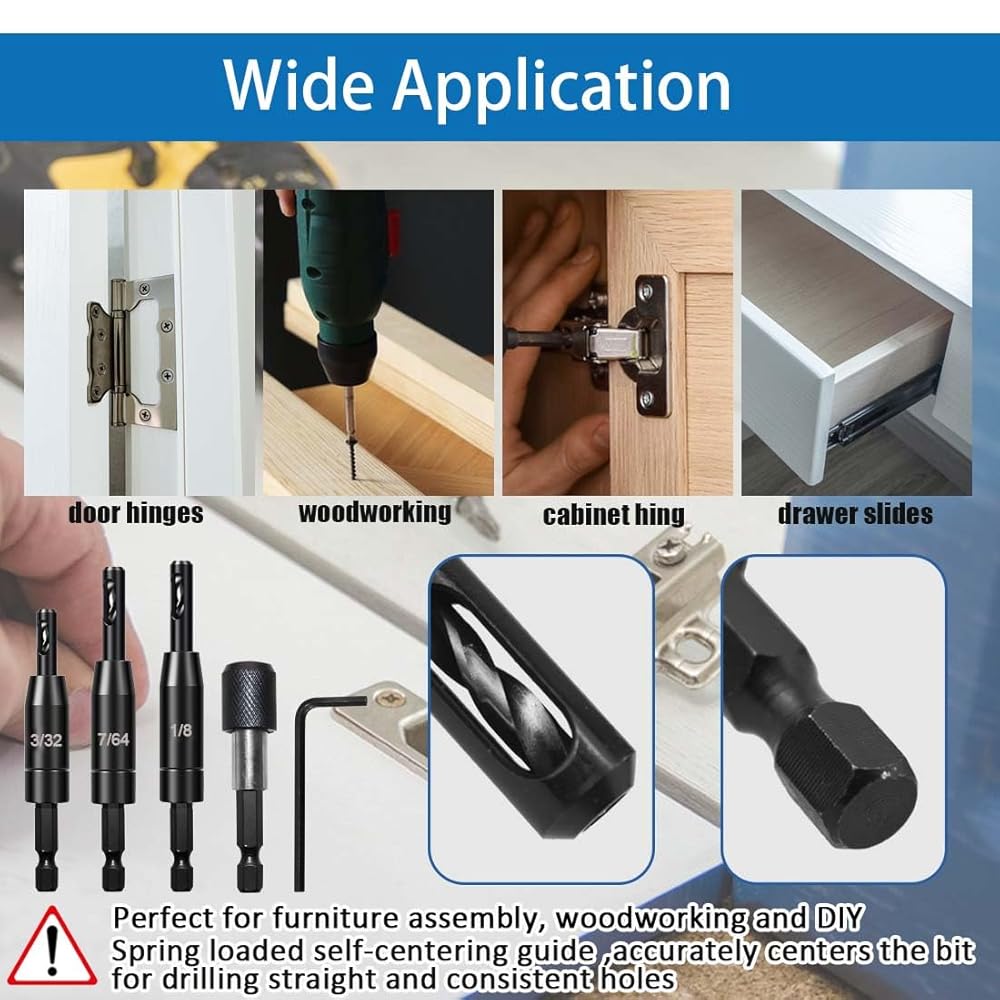 Self-Centering Drill Bit : Perfect for furniture assembly, woodworking and DIY.Designed for hinges, handles, cabinet hing, hinge plate, drawer slides, shelf brackets installation