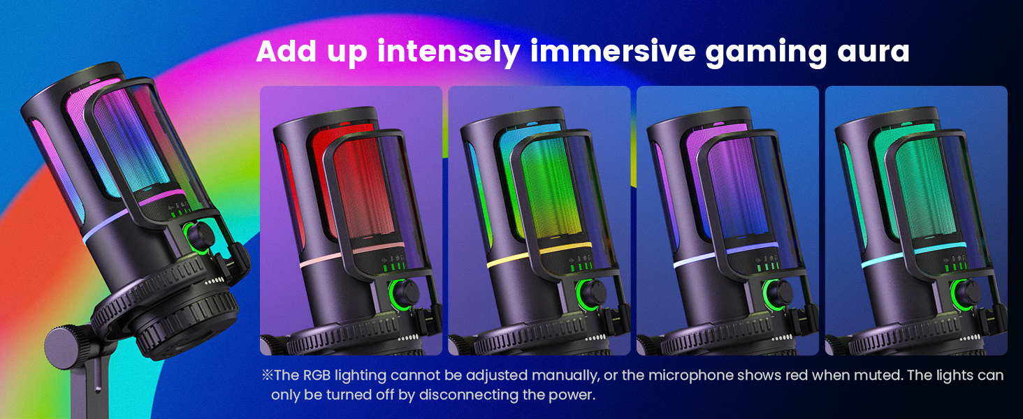 【عرض أضواء RGB غامرة مع مؤشر كتم الصوت الذكي 】 انغمس في لعبتك مع عرض أضواء RGB المذهل الذي يتنقل عبر الألوان لتتناسب مع ذوقك. وبعيدًا عن المشهد، فهو بمثابة حارس صامت يقظ. تؤدي نقرة بسيطة لكتم الصوت إلى تشغيل ضوء أحمر فوري، مما لا يترك أي شك في أن الميكروفون الخاص بك مغلق. تمنع هذه الحماية المرئية أي تسربات صوتية غريبة، مما يضمن بقاء لحظاتك الخاصة خاصة أثناء عمليات البث أو اللعب المهم. هذه هي الثقة التي نقدمها.