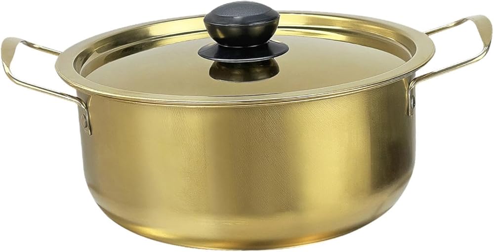 - 【Convenient Design】: The pot comes with a lid and double handles which make it easy to handle while cooking and serving Its unique golden color adds a touch of elegance to your kitchenware collection