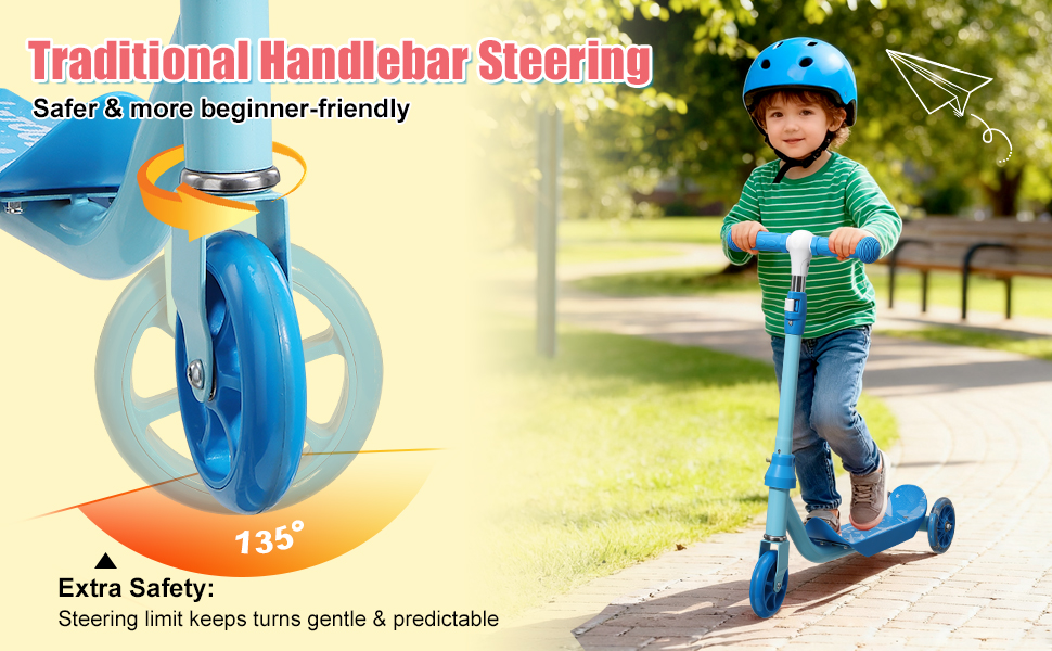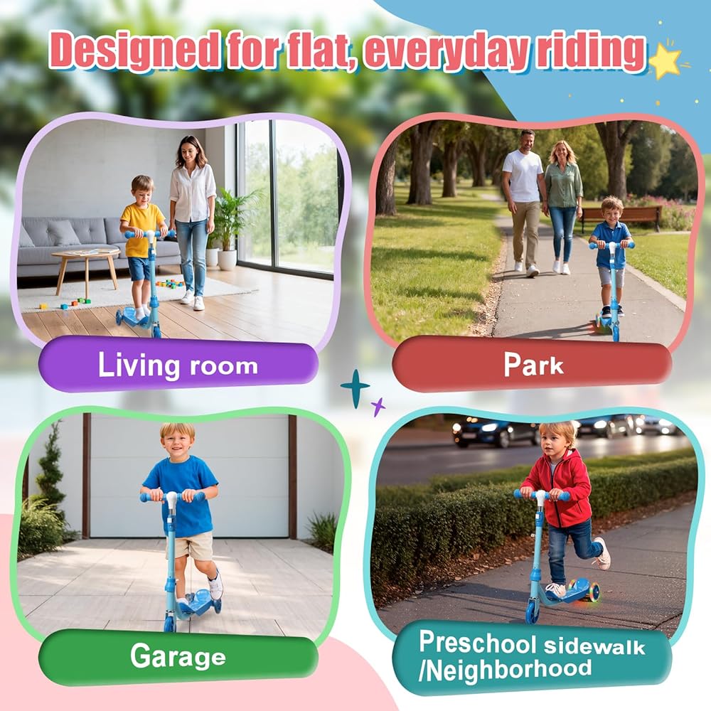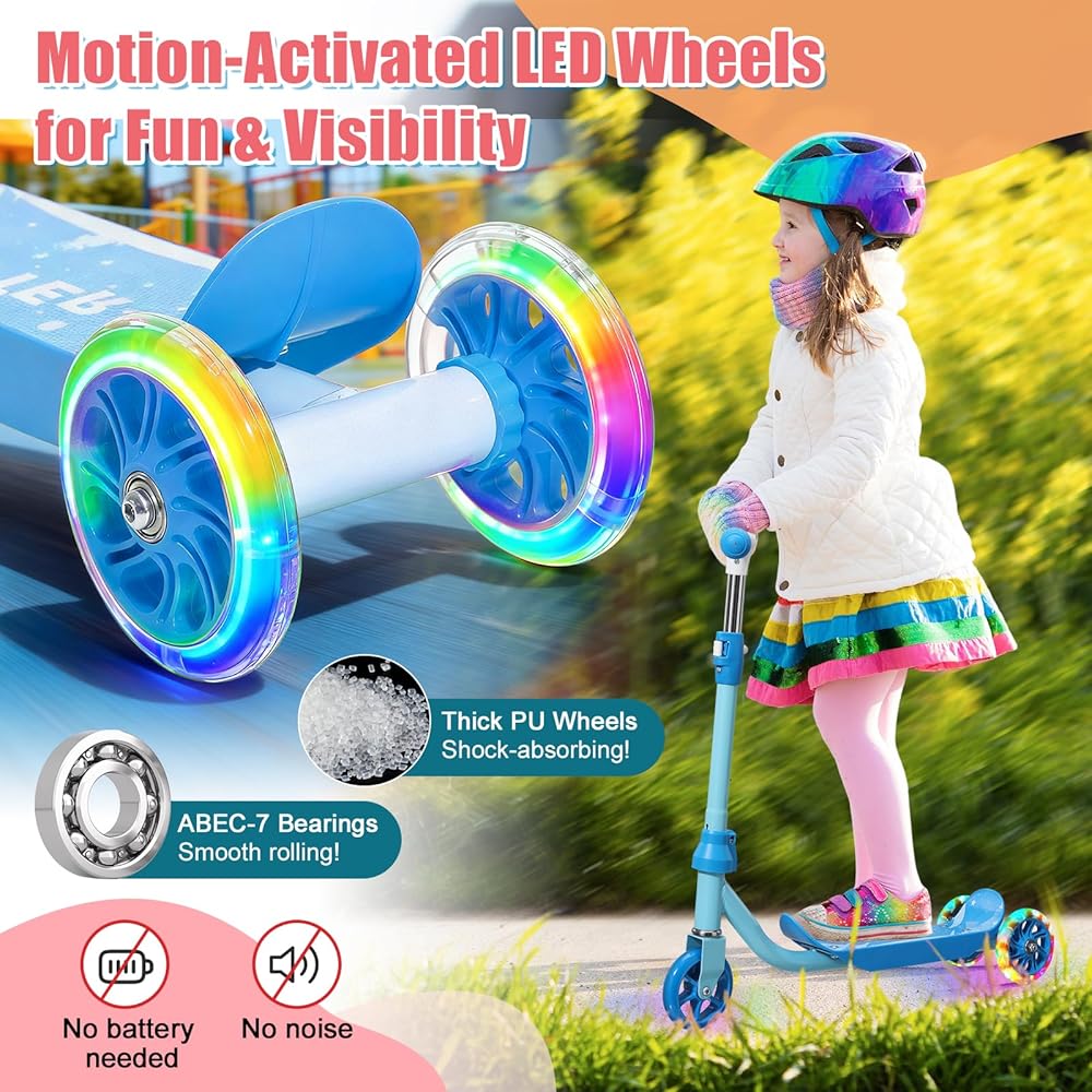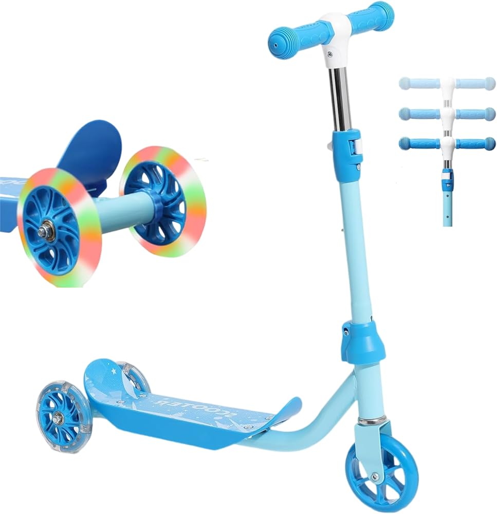سكوتر ركلة للأطفال من عمر 3 إلى 7 سنوات، سكوتر للأطفال الصغار بثلاث عجلات مع مقود توجيه (بدون ميل)، ارتفاع قابل للتعديل، عجلات خلفية مضيئة، لعبة داخلية وخارجية للفتيات والأولاد، هدية عيد ميلاد للعطلات