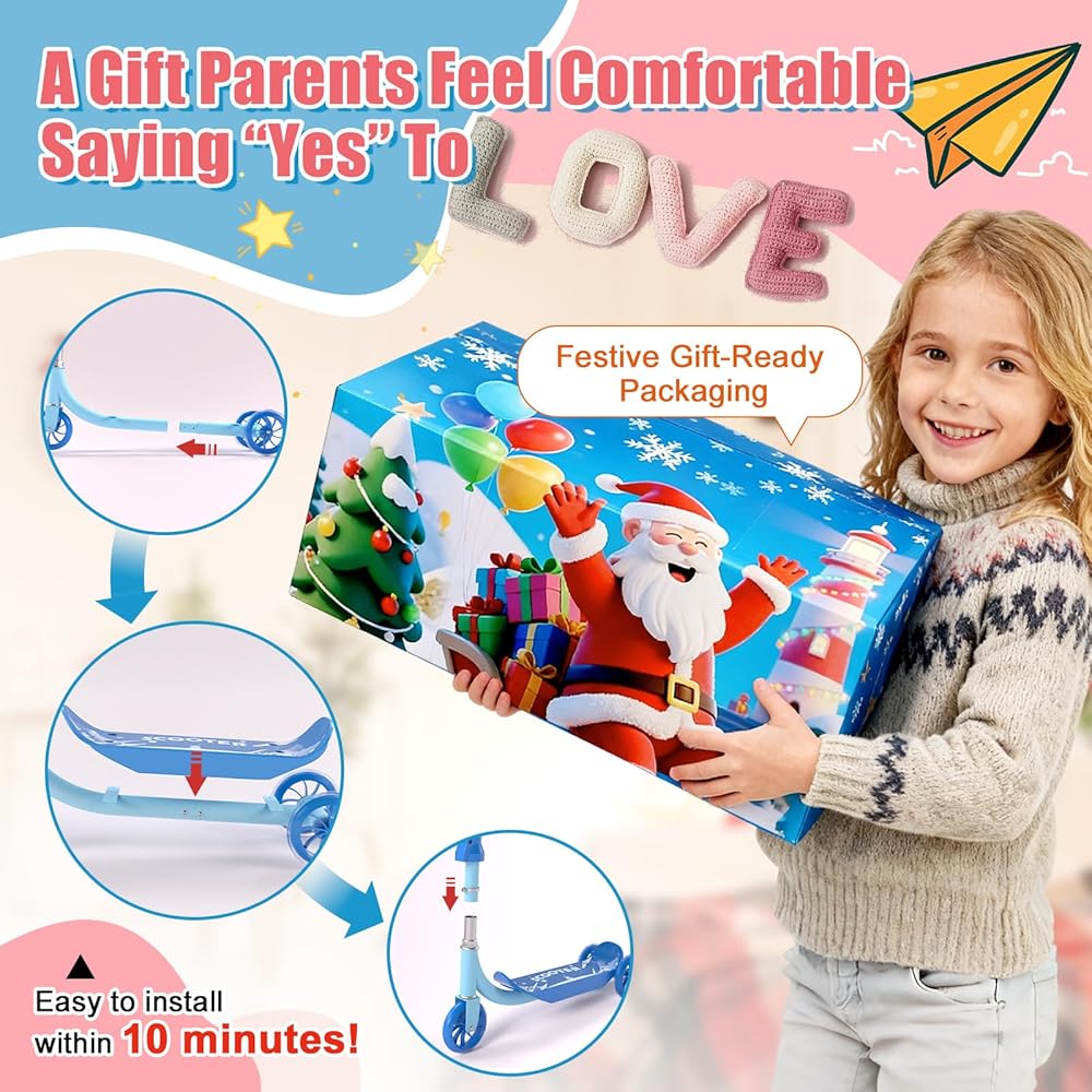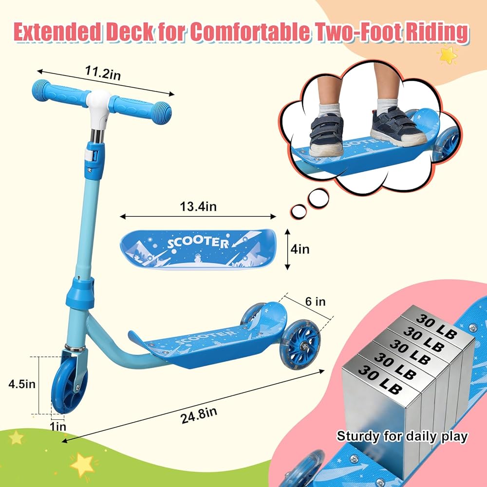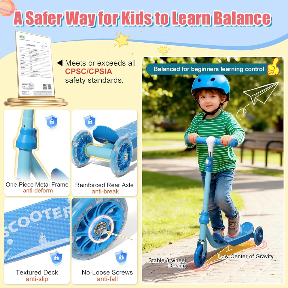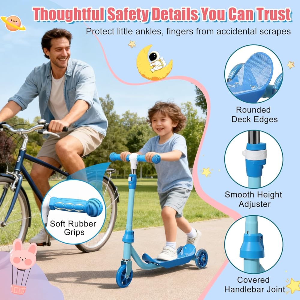 سكوتر ركلة للأطفال من عمر 3 إلى 7 سنوات، سكوتر للأطفال الصغار بثلاث عجلات مع مقود توجيه (بدون ميل)، ارتفاع قابل للتعديل، عجلات خلفية مضيئة، لعبة داخلية وخارجية للفتيات والأولاد، هدية عيد ميلاد للعطلات