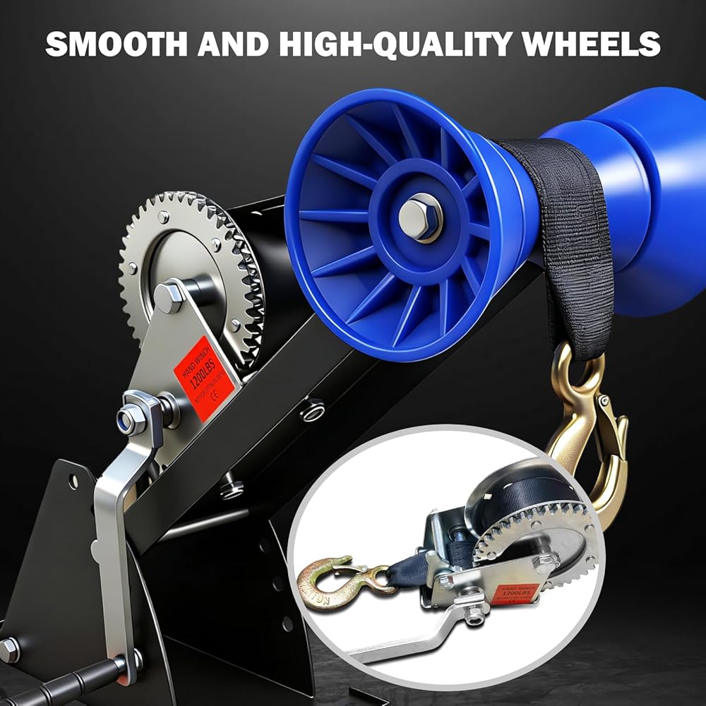 1200LB Two-Way Ratchet Winch IncludedThis complete kit includes a heavy-duty 1200LB two-way ratchet winch, constructed with durable manganese steel for robust pulling power. The anti-slip ratchet mechanism ensures safe, controlled loading and unloading of mid-sized boats, providing reliable performance when you need it most