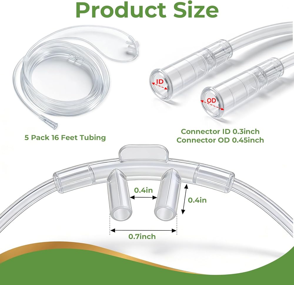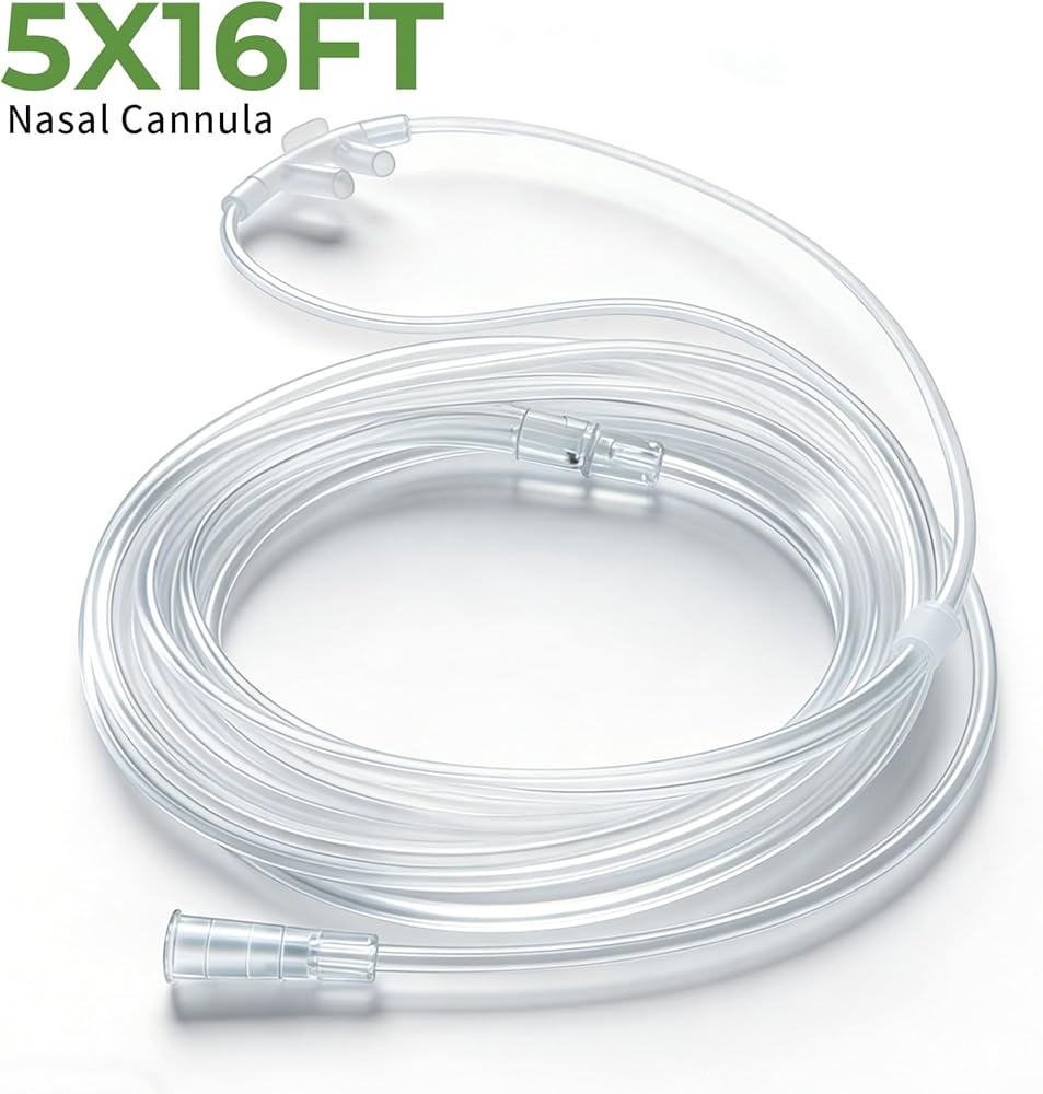 Optimized Design: The package contains 5pcs nasal cannulas, each one measuring 16 feet in length. Ultra-lightweight and transparent, they are convenient for carrying and use.