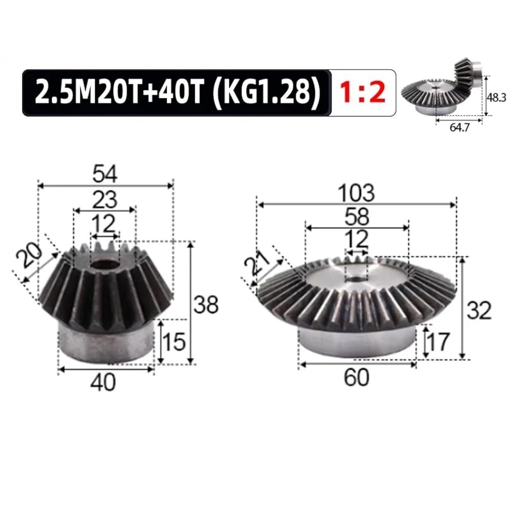 1:2 Bevel Gear 2.5M 20 Teeth +40 Teeth Inner Hole 12mm 90 Degree Drive Commutation Steel Gears Screw M5