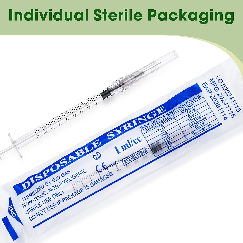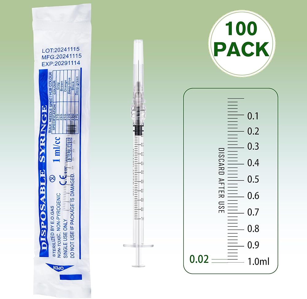 Value Pack: Includes 100 individually wrapped 1ml syringes with needles