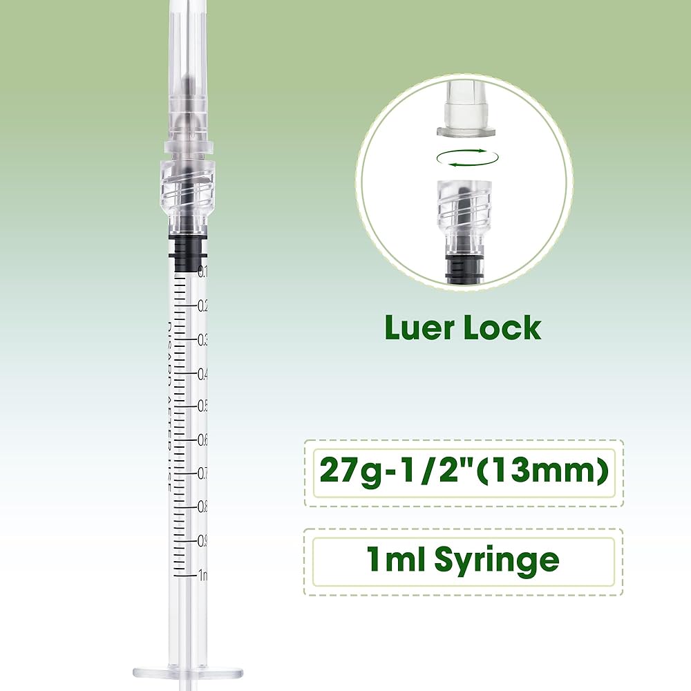 • Luer Lock Syringe with Needle - Featuring a professional Luer Lock Secure screw-on connection, the 27G 1/2 inch ultra-fine needle ensures minimal resistance and high-accuracy fluid placement