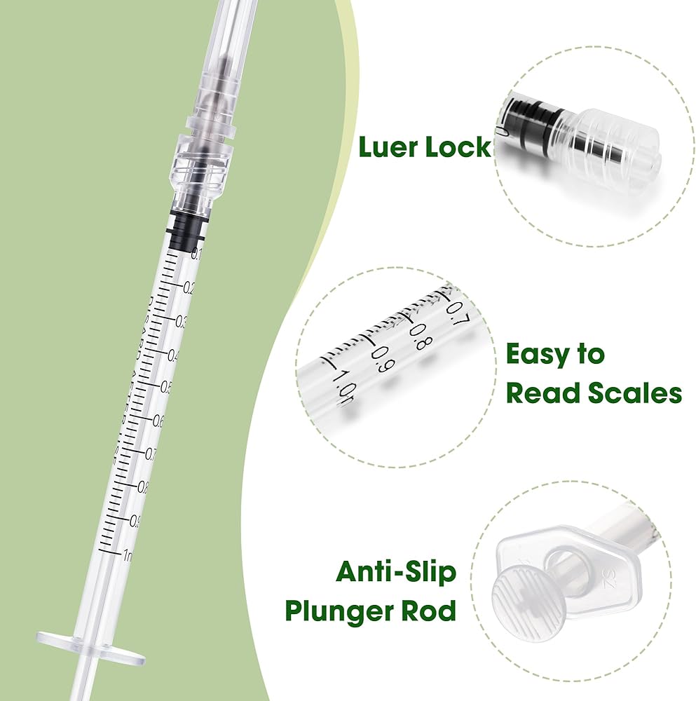 • Micro-Dosing Precision 1ml Syringe - The 1 mL ultra-slim barrel features clear, high-contrast graduation marks, allowing for absolute precision in measuring and dispensing microfluids or essential oils