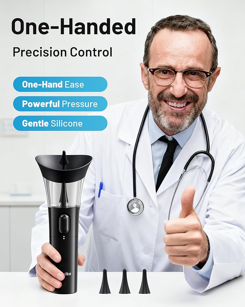 • التشغيل اليدوي بيد واحدة: مصمم للاستخدام بيد واحدة، مما يسمح بتنظيف الأذن بدقة؛ مقبض مريح يدعم قبضة ثابتة وحركة يمكن التحكم فيها