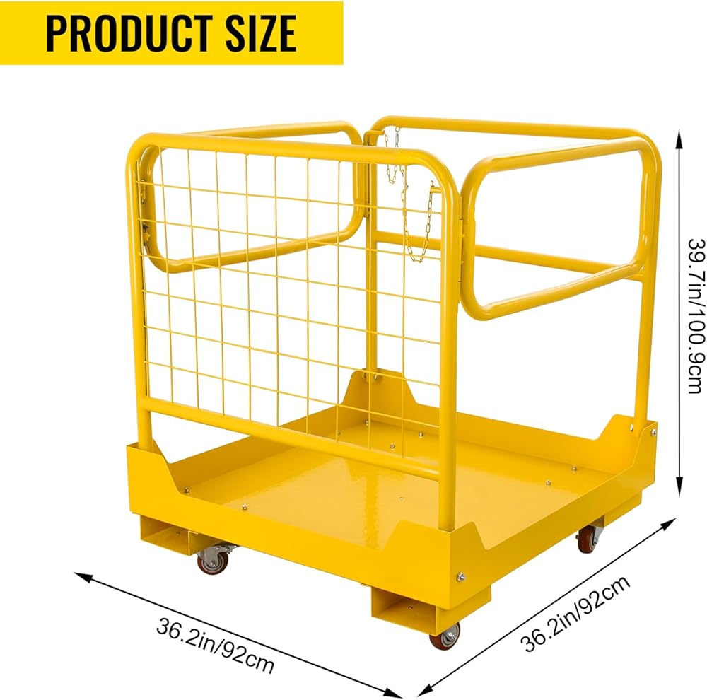 🔔【سعة الملاءمة والتحميل】حجم قفص أمان الرافعة الشوكية: 36.2 بوصة طول × 36.2 بوصة عرض × 39.7 بوصة ارتفاع؛ سعة الوزن: 1200 رطل. إنه الحجم والقوة المثاليان بالنسبة لك للوقوف والتحرك. متوافق مع الرافعة الشوكية القياسية أو محمل البليت.