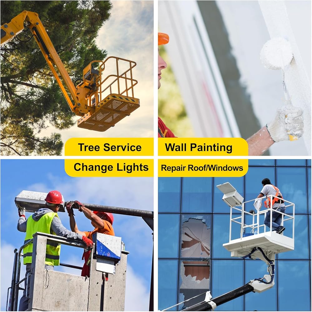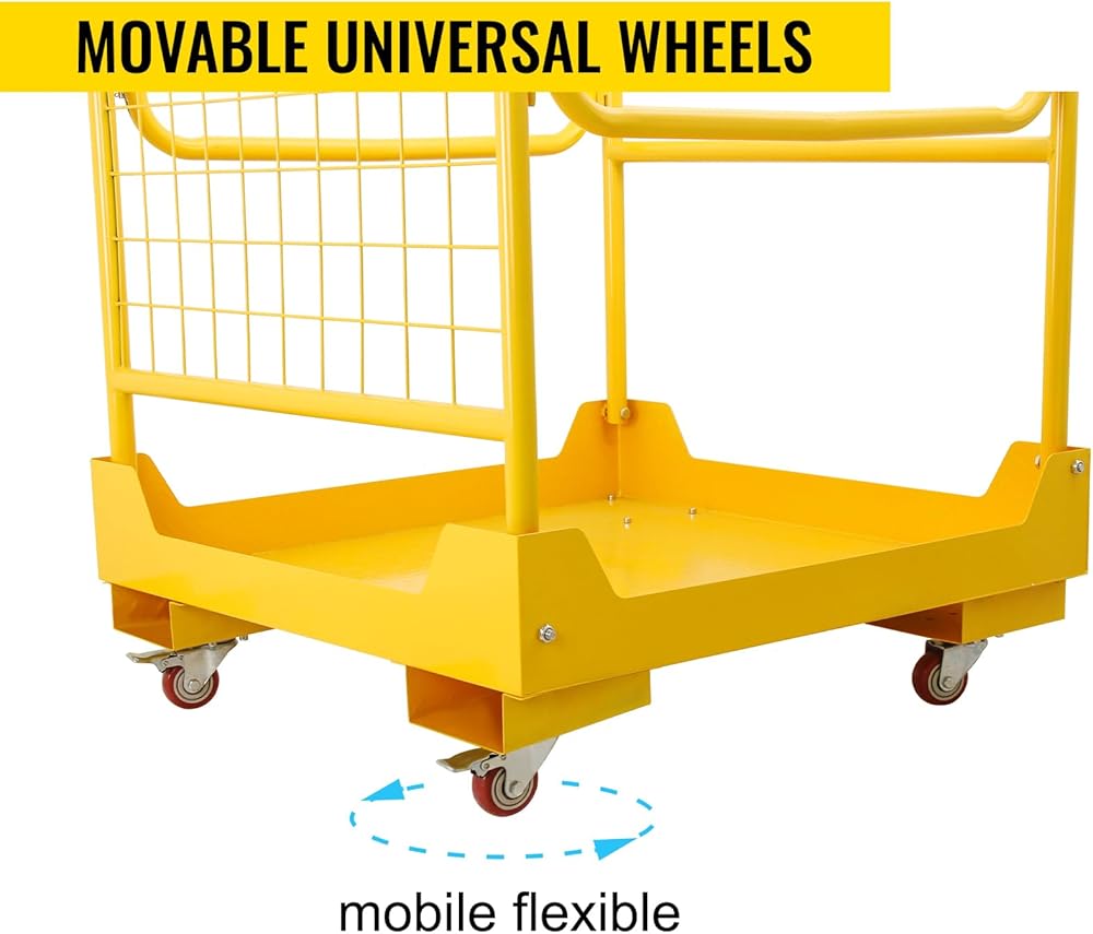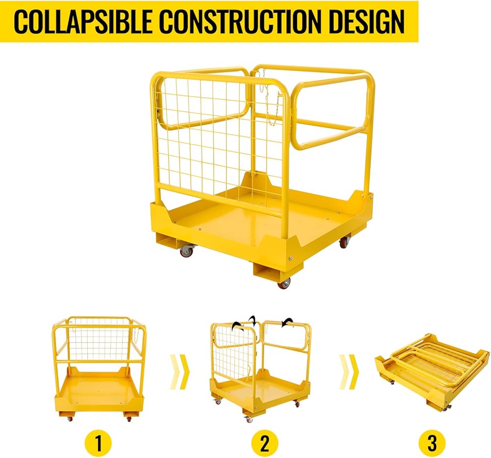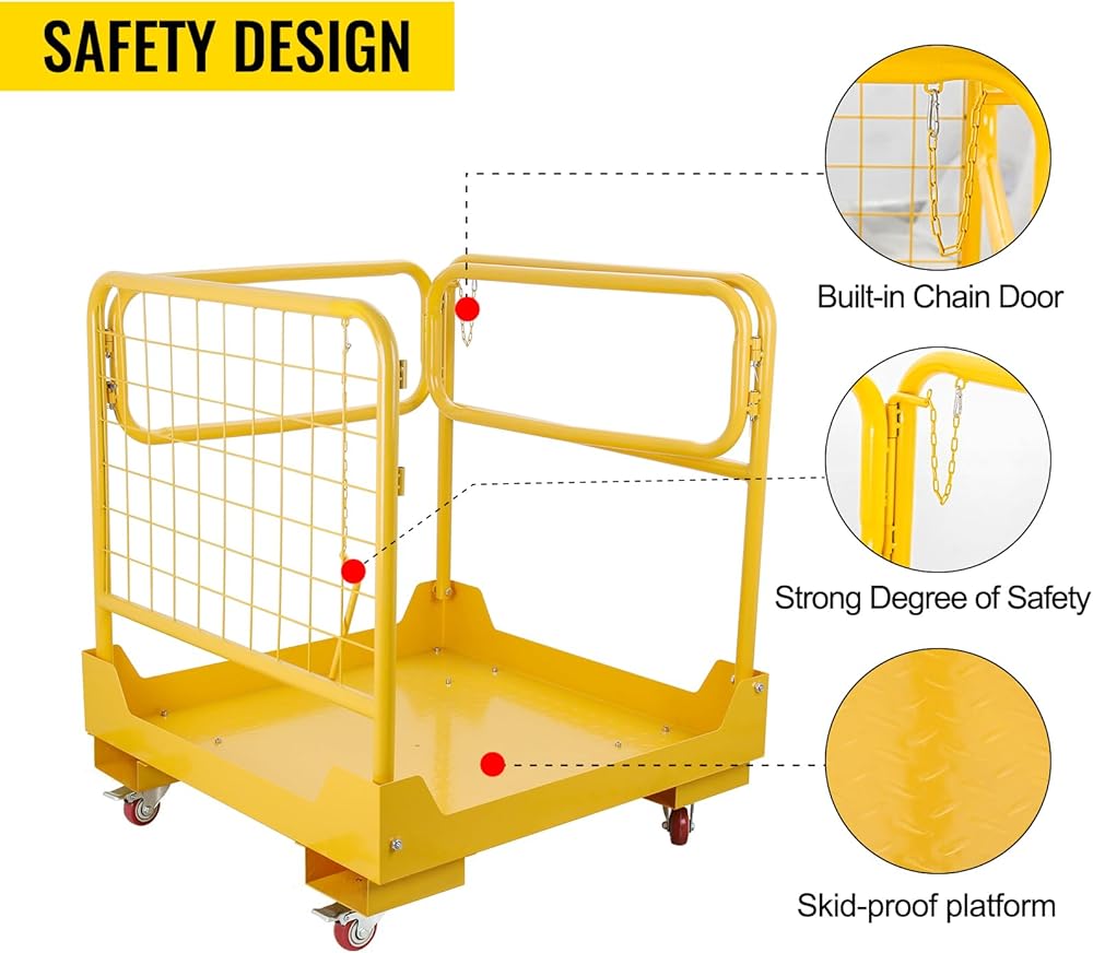 🔔【حماية شاملة】حافظ على سلامتك وموظفيك مع هذه السلة الفولاذية شديدة التحمل. وهي معززة بدرابزين وأرضية غير قابلة للانزلاق للمساعدة في منع السقوط والإصابات. كما أنها تحتوي على شاشة أمان شبكية تساعدك على الحفاظ على أمانك بالداخل. بالإضافة إلى ذلك، هناك سلاسل ثلاثية تجعل الدخول والخروج أسهل.