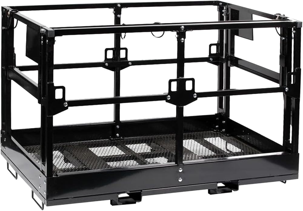Robust Construction for Heavy-Duty Performance:Crafted from high-strength steel, our Forklift Safety Cage delivers exceptional durability and load-bearing capacity. Supporting up to 1,700 lbs, this Forklift Work Platform offers ample space for personnel and equipment, ensuring a solid elevated workspace. Engineered for compatibility, this heavy-duty Forklift Cage attaches seamlessly to standard forklifts or pallet jacks.