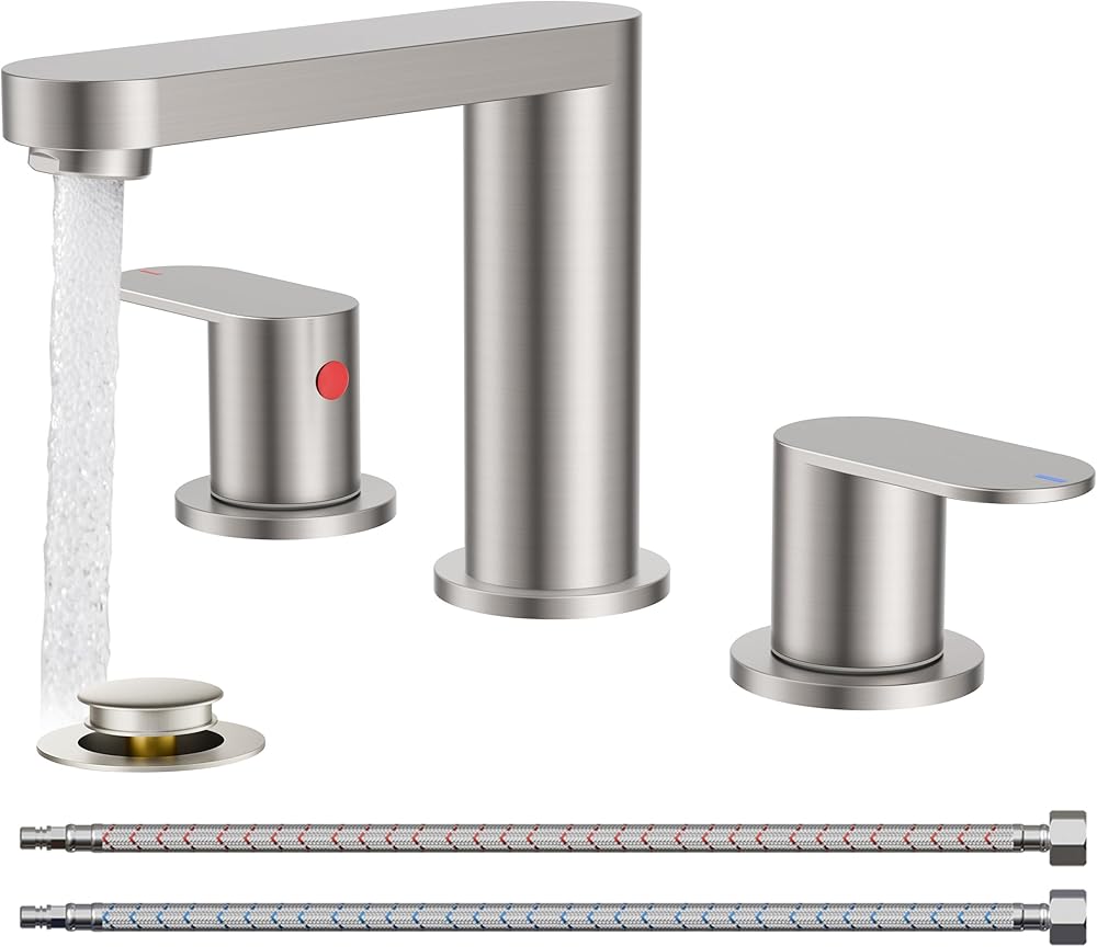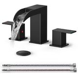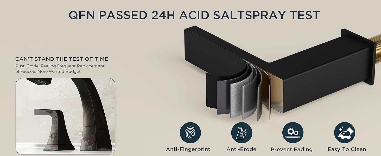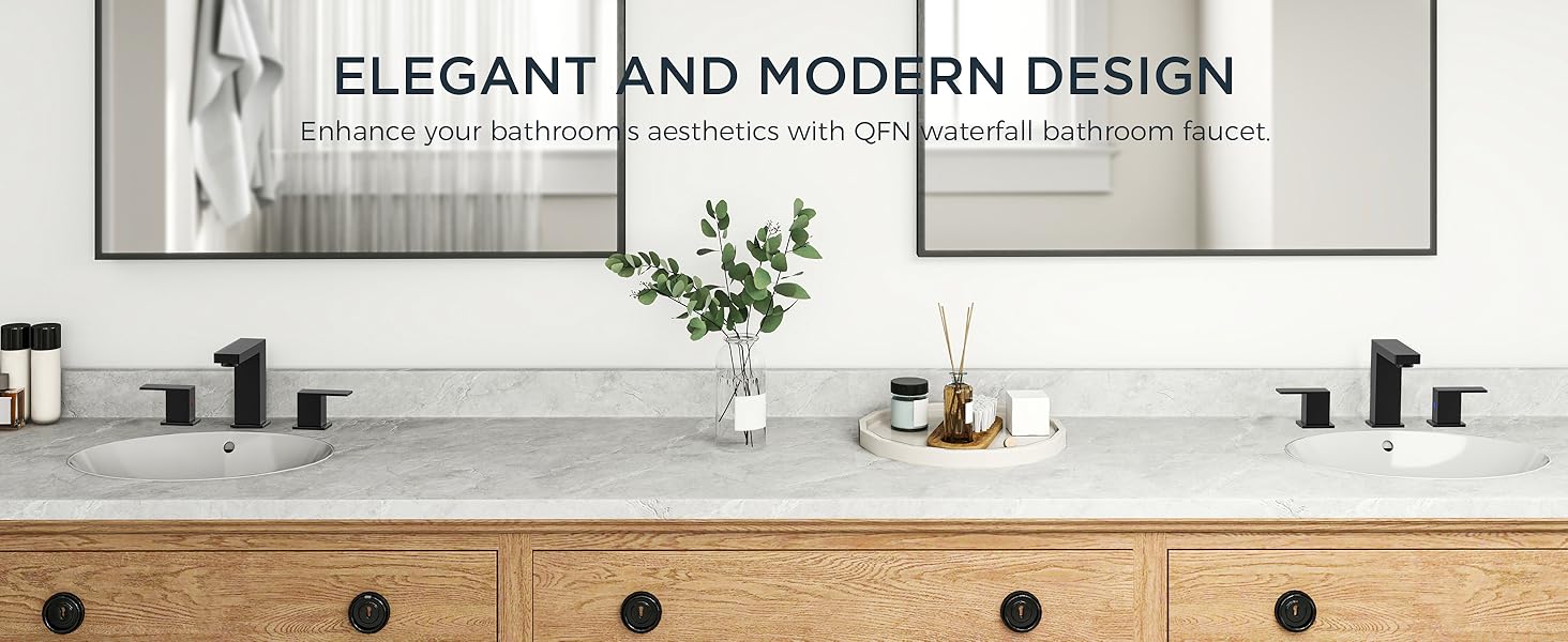 • EASY TO INSTALL: We simplify every step, 3 quick connectors will make matte black bathroom faucet installation extremely simple, watch the video to assist you install 8 inch bathroom faucet in minutes. يأتي صندوق QFN مع كل ما تحتاجه للتركيب، ويناسب أحواض مركزية ذات 3 فتحات من 4 إلى 12 بوصة
