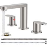 • مخرج إنساني: يمتد رأس صنبور الحمام المكون من 3 فتحات بعيدًا فوق المصرف، والفوهة لها زاوية إمالة علمية. لا داعي للقلق بشأن سكب الماء مرة أخرى على سطح العمل أو تناثره، فكل شيء يذهب إلى المصرف بسهولة