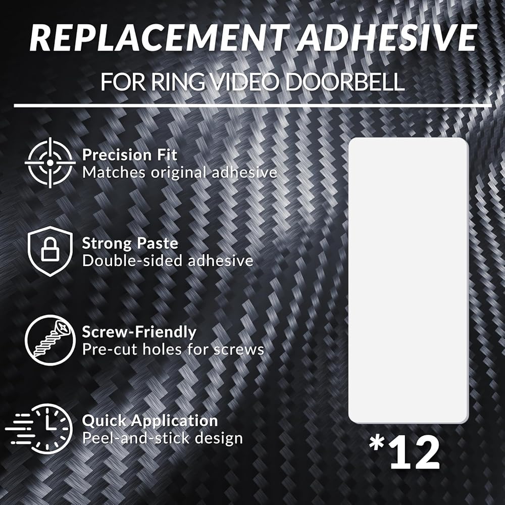 12 قطعة شريط مزدوج الجوانب لشريط تثبيت Ring Video Doorbell (الجيل الثاني) - شريط مزدوج الجوانب مقطوع مسبقًا | لا حفر ولا براغي | لاصق قوي للغاية للخشب والطوب والمعادن والجدران المطلية