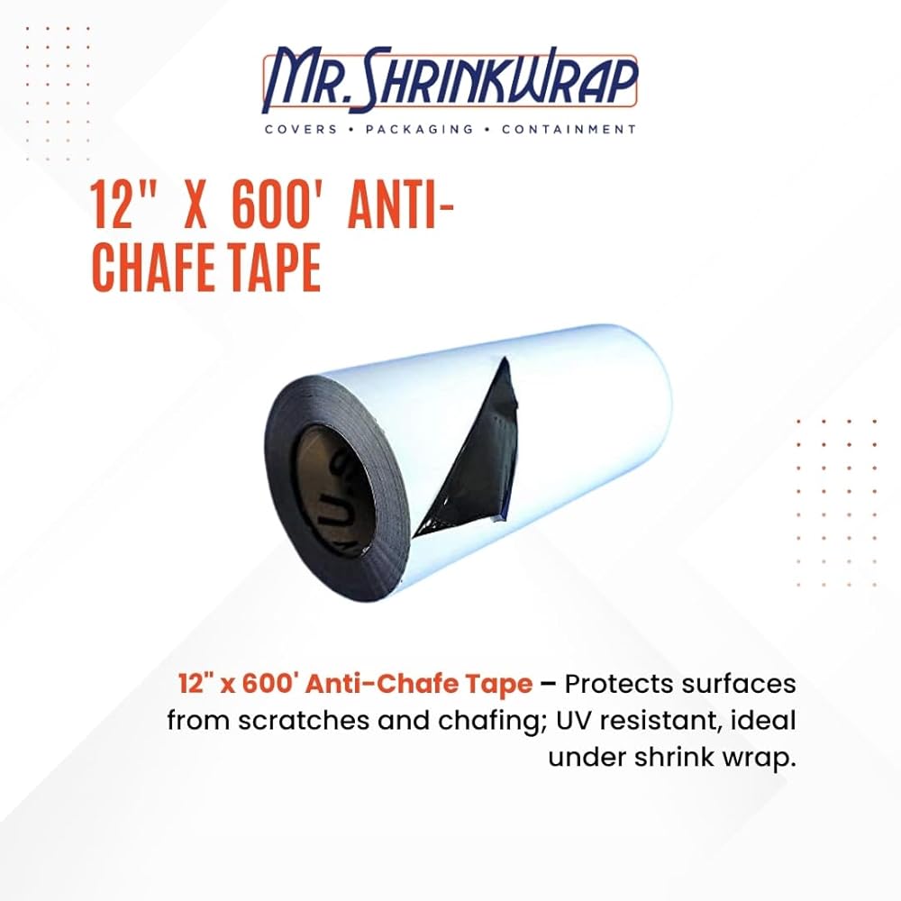 يتم وضع الشريط المضاد للاحتكاك بشكل متكرر بين غلاف الانكماش والجسم الذي يتم تغطيته لمنع الخدش أو الاحتكاك.