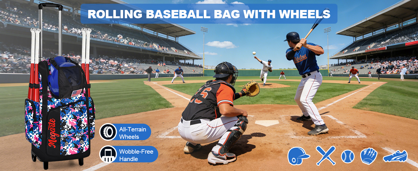⚾ [متينة ومقاومة للماء] - مصنوعة من نسيج 900D مقاوم للتمزق مع حماية مقاومة للماء، وخياطة معززة، وسحابات متينة، تتحمل حقيبة معدات الالتقاط هذه الاستخدام الثقيل والحقول الخشنة. حقيبة بيسبول ذات عجلات طويلة الأمد مصممة للتدريب اليومي والمنافسة في عطلة نهاية الأسبوع.