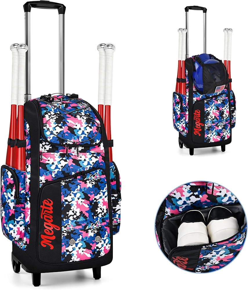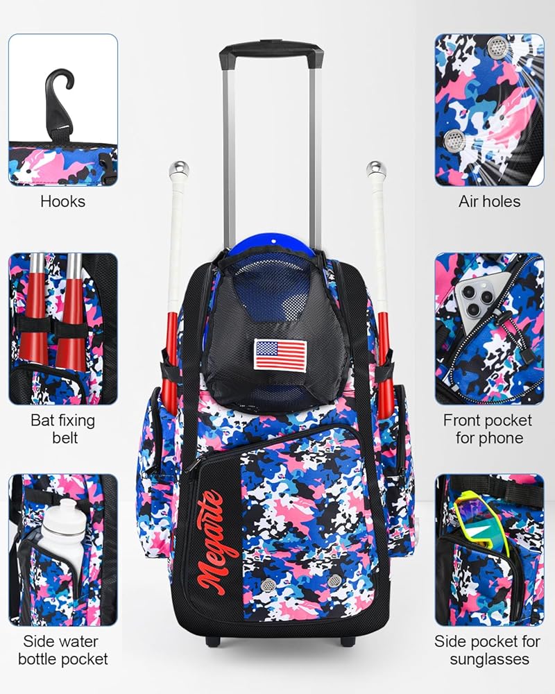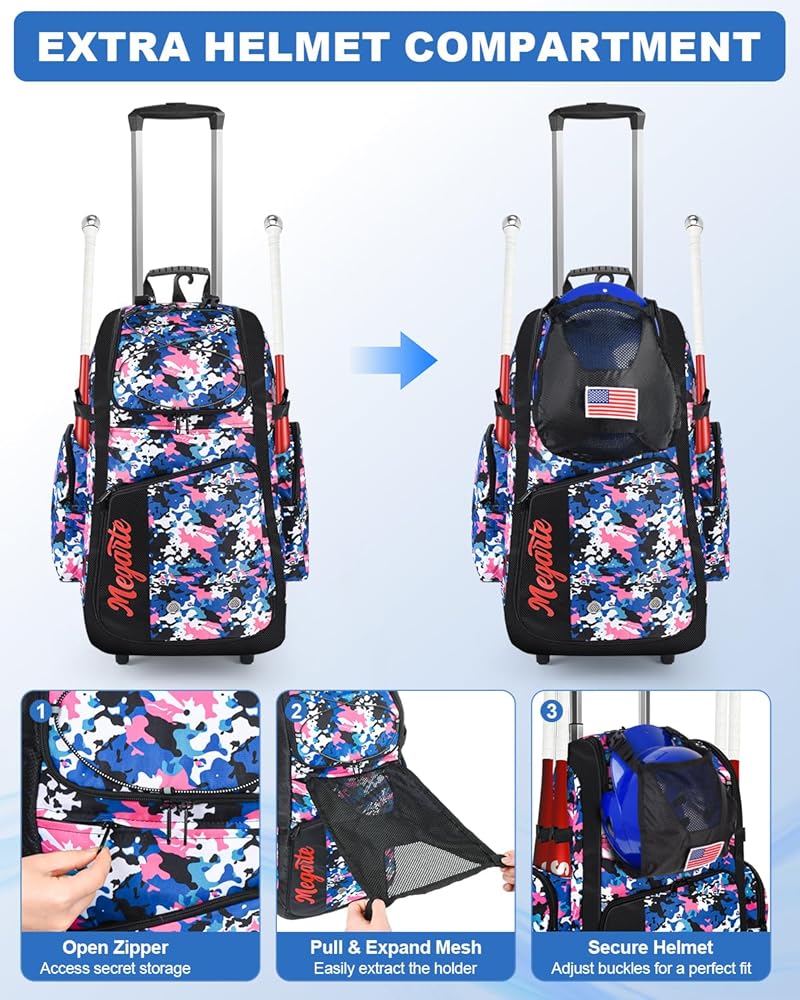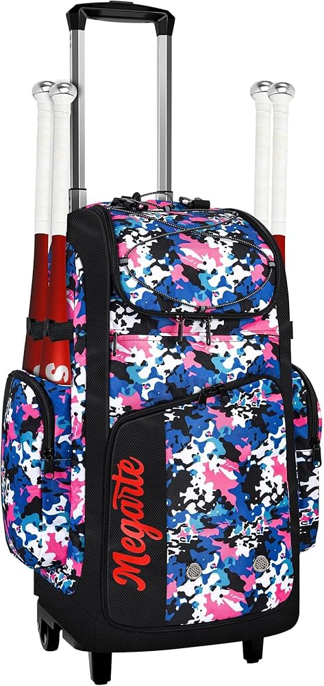 ⚾ [تصميم احترافي] - صُممت حقيبة البيسبول الدوارة هذه خصيصًا للتدريب، وتتميز بمقبض سحب مزدوج تلسكوبي من الألومنيوم مقاس 37 بوصة مع دعم سفلي ثابت لمنع الانقلاب. تسمح أحزمة الكتف المبطنة المريحة للرياضيين من جميع الأطوال بالتبديل بسهولة بين السحب والحمل من أجل نقل مريح.