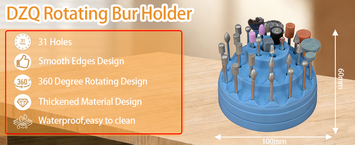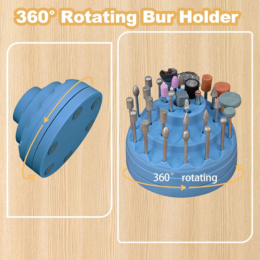 حامل رؤوس مثقاب دوار 360 درجة من DZQ للأدوات الدوارة - 31 فتحة في 3 أحجام، قاعدة غير قابلة للانزلاق، حامل منظم لملحقات مطحنة العمود المرن، قطع النقش، وأدوات صنع المجوهرات