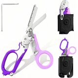 مقصات الصدمات 6 في 1، أداة أمان متعددة الوظائف مع قاطع حزام الأمان، وكسارة الزجاج، ومفتاح خزان الأكسجين، وقاطع حلقي ومسطرة للتخييم في الهواء الطلق، والمشي لمسافات طويلة في حالات الطوارئ (أرجواني)