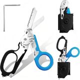 [مقصات الصدمات الاحترافية] - المقصات مجهزة بـ 6 أدوات أساسية، بما في ذلك مقصات الصدمات، وقاطع الحزام، وقاطع الحلقات، ومسطرة، ومفتاح خزان الأكسجين، وكسارة زجاج الكربيد، وهي أداة أساسية للمحترفين الطبيين للتعامل مع حالات الطوارئ ويمكن أن تكون أيضًا بمثابة إضافة قيمة لمجموعة الإسعافات الأولية في منزلك.
