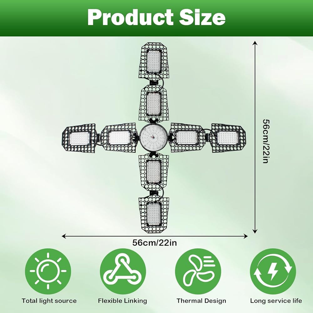 【High Quality】 The foldable plant grow lights indoor material and structural design fully considers durability and adaptability. The lamp panels are made of high-strength materials, offering excellent impact resistance, waterproofing, and heat dissipation, making them suitable for various indoor and outdoor environments. Furthermore, their flexible light adjustment function allows them to adapt to a wide range of plant types.