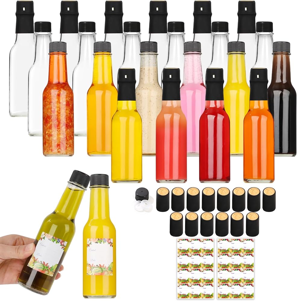 استخدامات متعددة: إلى جانب ملء الصلصة الساخنة، فإن زجاجات النبيذ الصغيرة هذه مثالية لاحتواء صلصة السلطة والشراب والخل والكومبوتشا وحتى المشروبات الكحولية اليدوية. استخدمها لإنشاء هدايا مخصصة عن طريق ملئها بمنتجاتك محلية الصنع لقضاء العطلات أو حفلات الزفاف أو الحفلات