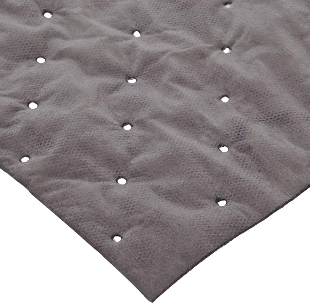 SpillTech universal multilaminate mat pad. These are long-lasting and durable for rugged applications. Outer layers of tough-skinned, Heavyweight spun bond material resist abrasions and tears. It can withstand rough handling and won't tear apart when pulled or positioned under equipment. It is ideal as a liner for oily parts and tools or for use in rugged applications near machinery. High-loft melt blown inner layer draws and holds liquids from outer layers. Absorbs high volumes of liquid fast. Color-coding helps you visually identify the right sorbent for your needs. Grunge-hiding gray signifies universal sorbency for oils, coolants, solvents and water. Outer spun bond layers are constructed of continuous strands of polypropylene fibers, interwoven to virtually eliminate fibers from becoming detached and contaminating equipment, tools or parts. Pads are perfed vertically at 7-1/2-inches. Tear off only what you need, save money. Incinerable. Basis weight: Heavyweight. Composition: polypropylene. Absorbency: up to 23.4 gallons per package. Absorbency per: up to 29.95 ounce per pad. Measures 19-inches length by 15-inches width.