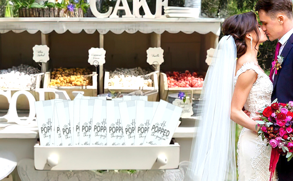 إضافة ممتعة إلى ديكورات حفلات الخطوبة!، ضعها بالقرب من بار الكوكتيل في حفلة الخطوبة وأحبها الجميع! تفاصيل رائعة، خاصة إذا كان العروس والعريس من محبي الفشار