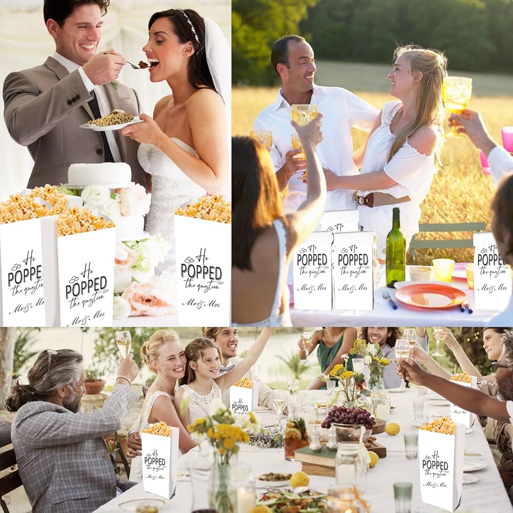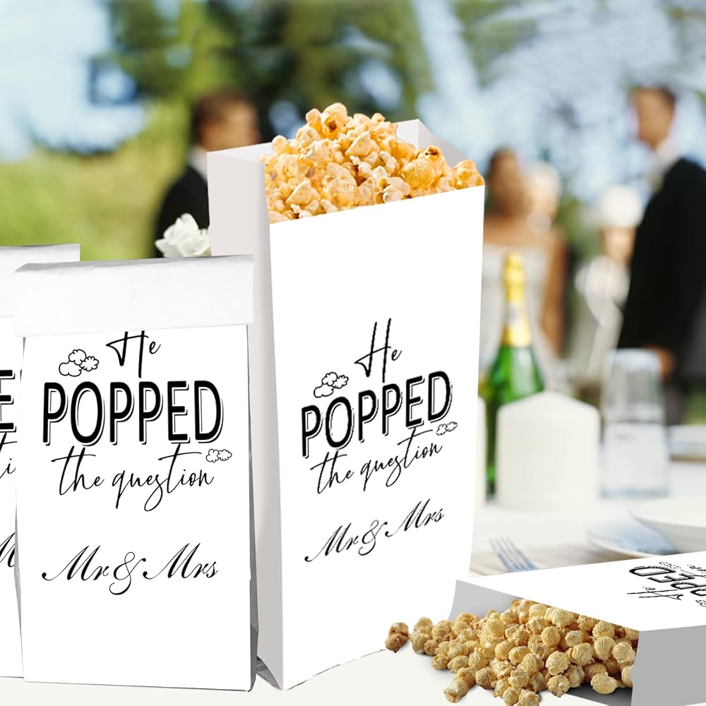ستكون أكياس الفشار من He Popped the Question هدية رائعة لتقديمها في ديكورات حفلات الخطوبة. من لا يحب الفشار