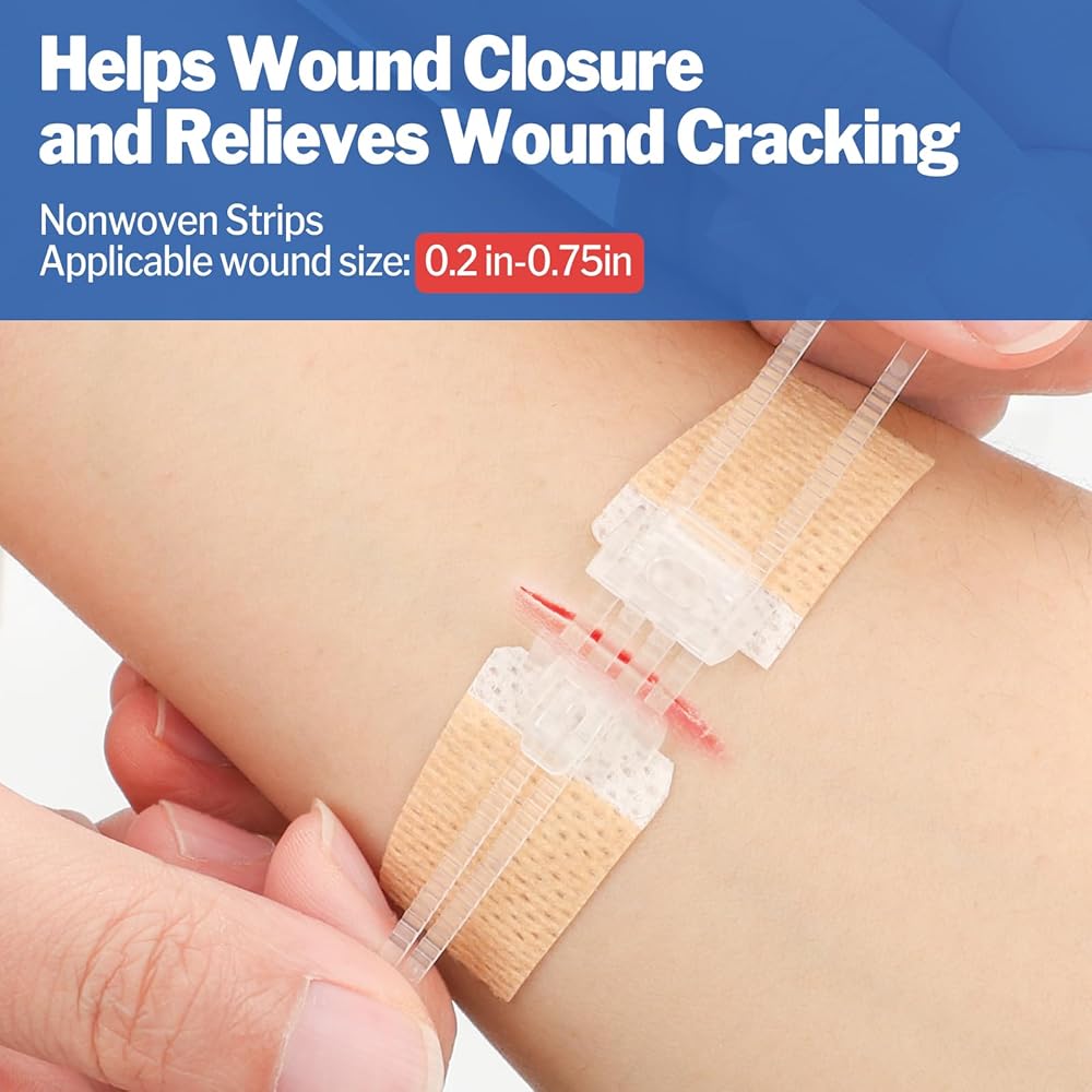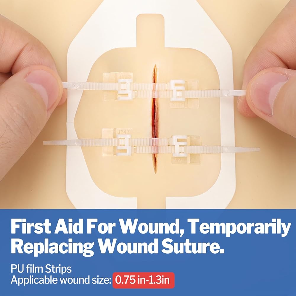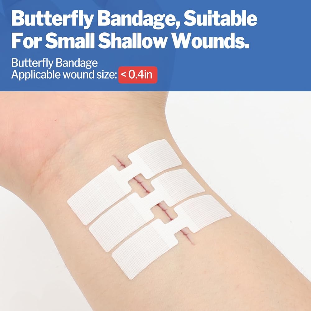 مجموعة إغلاق الجروح: تتضمن مجموعة أدوات إغلاق التمزق كل ما تحتاجه لإغلاق الجرح بفعالية. يأتي مع 10 ضمادات غرز على شكل فراشة، و6 أجهزة لإغلاق الجروح في حالات الطوارئ. جميع ضمادات الفراشة معبأة بشكل فردي، مما يضمن السلامة والنظافة