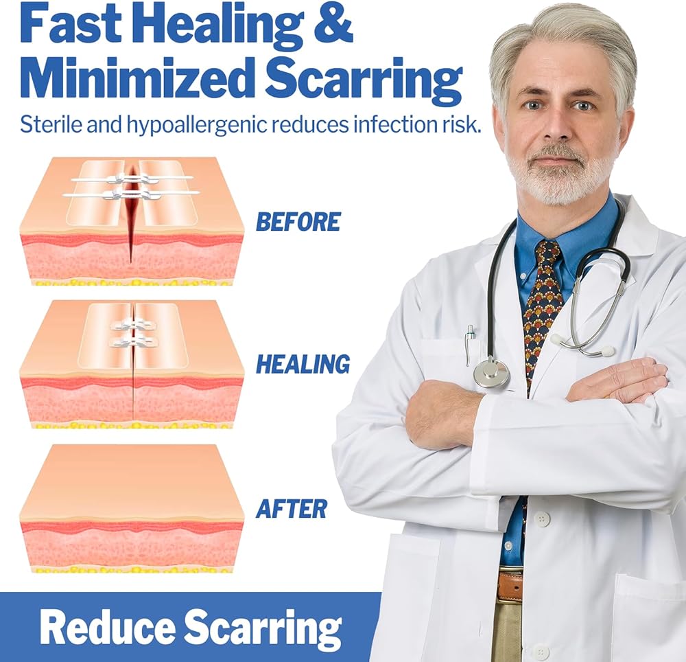 سريعة وغير مؤلمة: تعمل ضمادات الغرز لإغلاق الجرح على إبقاء الجرح مغلقًا مما يوفر له دعمًا قويًا وآمنًا وغير مؤلم وبديلًا للغرز. تساعد ضمادات الفراشة على شفاء الجروح الصغيرة في أيام وحماية الجرح من التعرض